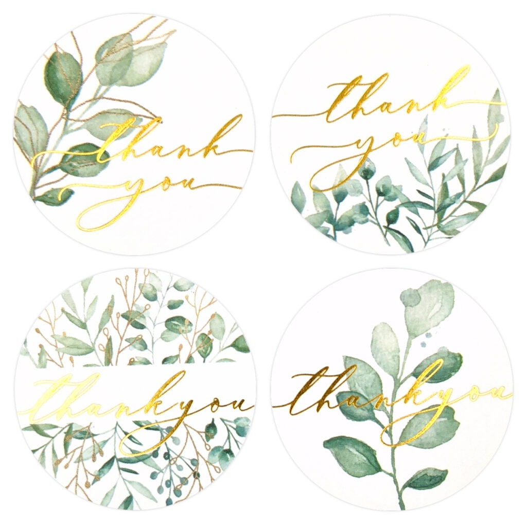 500PK 1.5″ Greenery Gold Foil Thank You Stickers