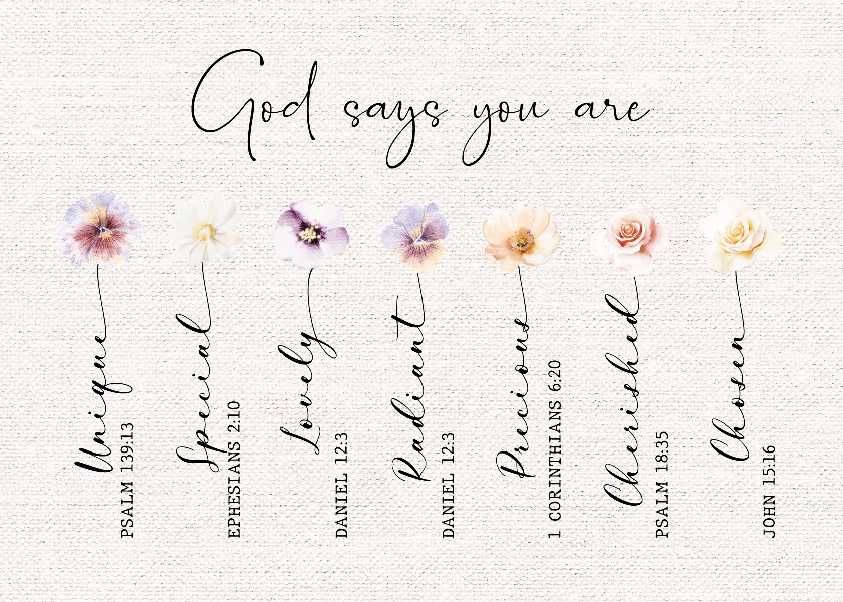 Thoughtfully created Christian thinking of you card for women featuring beautiful floral artwork and powerful scripture quotes including Psalm 139:13,…